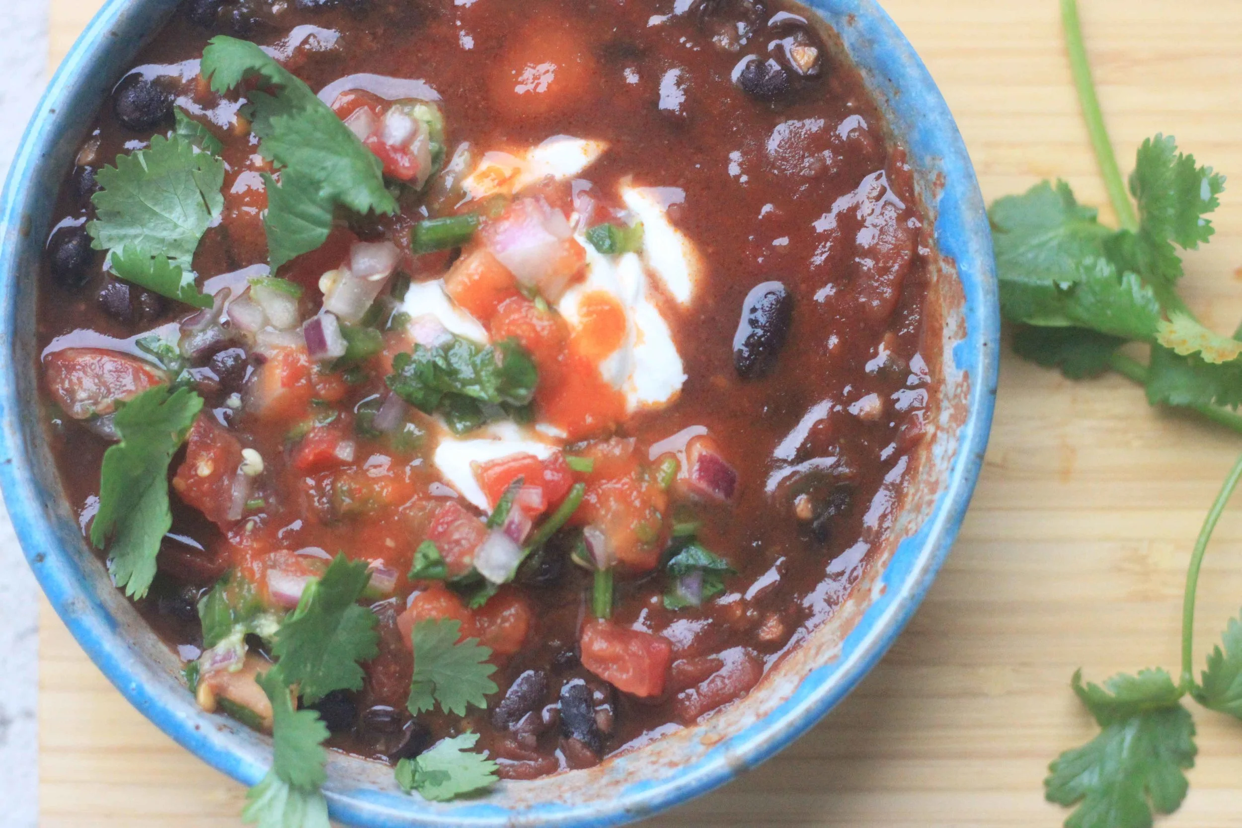 hearty, vine-ripened tomatoes contrast habañero heat in this chunky, black bean soup as cilantro, lime and earthy cumin create a rustic melange.